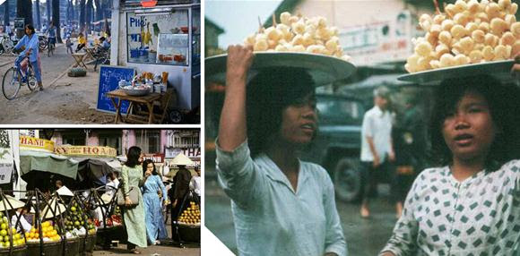 Đủ các loại đồ ăn được bán trên khắp thành phố. Qua những khung ảnh xưa, chúng ta có thể cảm nhận nhiều sắc thái văn hóa khác nhau tại Sài Gòn. Tất cả tạo nên một bản sắc thú vị của ẩm thực Sài Gòn mà không nơi nào có được